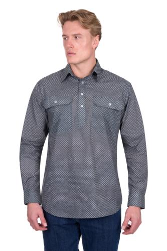 Half placket 2-pocket long sleeve shirt, one with pen holder, logo buttons