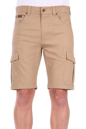 Medium weight twill for strength and durability, stretch for comfort and movement, coin pocket, side cargo pockets, pocket flaps with self fabric backing for strength and stability, twin back belt loops, logo button & rivets, double top stitching for strength, Hard Slog label on coin pocket